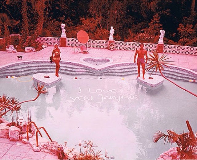 Nel novembre 1957, assieme al futuro marito Hargitay, acquistò una villa da quaranta stanze sul Sunset Boulevard a Beverly Hills, battezzandola il "Palazzo Rosa" (Pink Palace): come suggerisce il nome, il colore predominante era il rosa, con piccoliCupido circondati da luci rosa fluorescenti, tappetini rosa nei bagni, una vasca da bagno a forma di cuore e una fontana che sprizzava champagne rosato. Hargitay, che prima di divenire culturista era stato idraulico e muratore, costruì personalmente la famosa piscina rosa a forma di cuore.